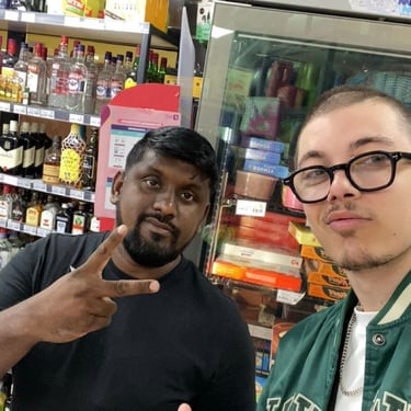 Photo avec le (vrai) gérant de la supérette